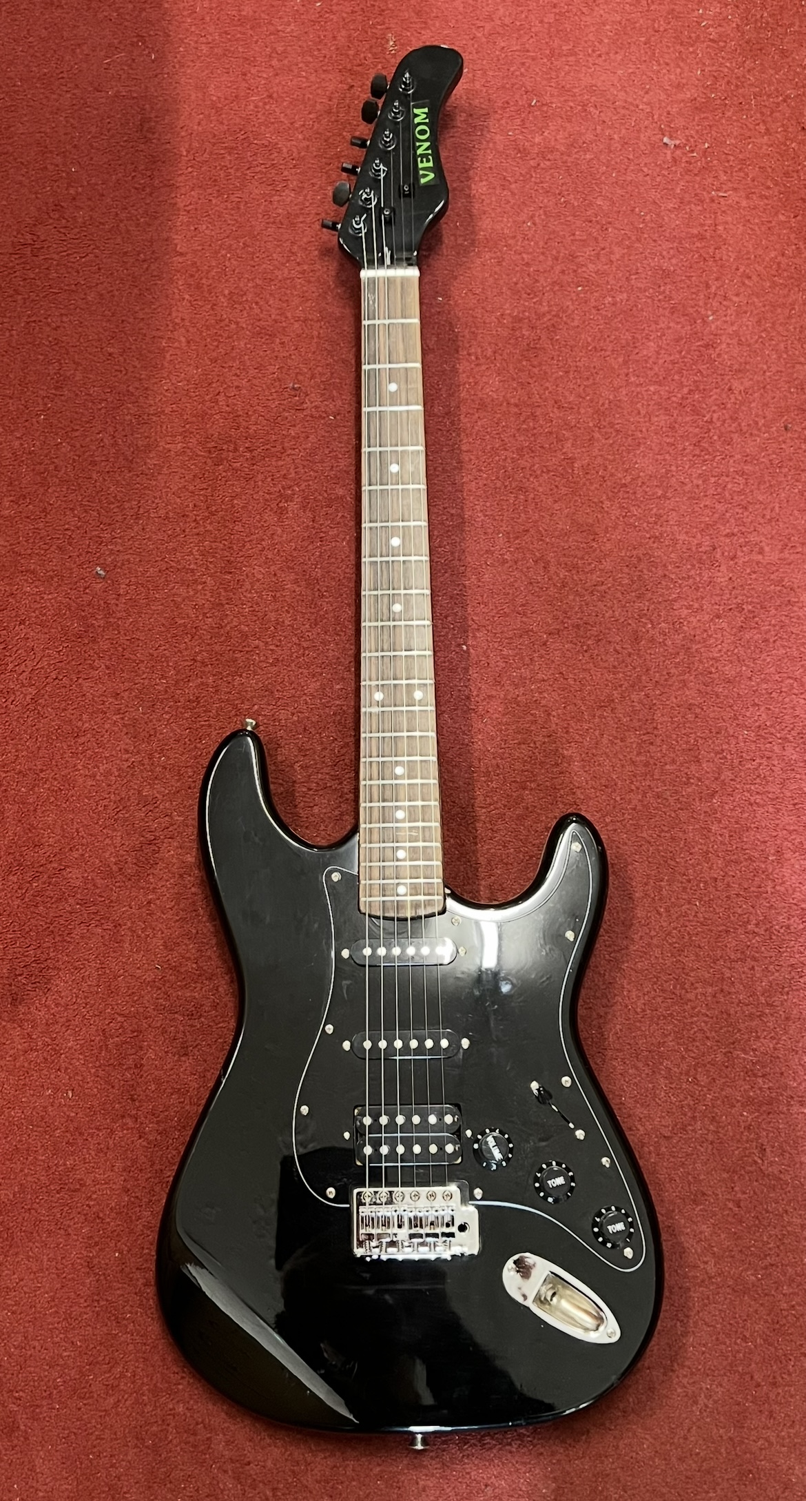 Black Venom electric guitar, not seen one before maybe re-badged…Plays and feels well.